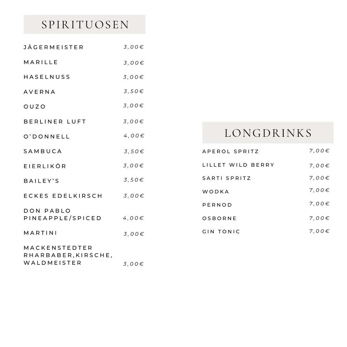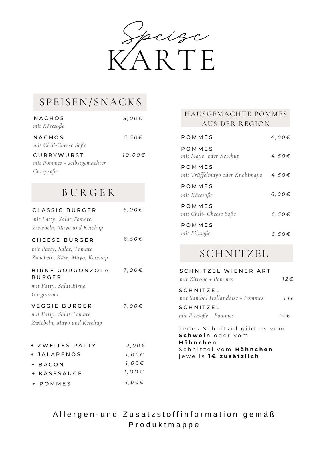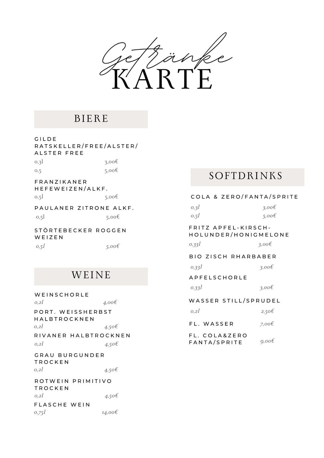 Getränkekarte & Speisekarte